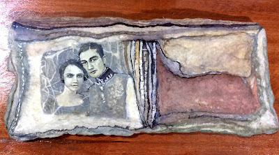 In another work by Siji Krishnan from Kerala, soft colours evoked the time-worn textures carried as memories through photographs and souvenirs collected and often forgotten. In creating the layers of memory, especially childhood memories through small, life-sized wallets using papier-mâché and mixed media the works were so softly hued as to remind one of the many washes they have gone through – the washes of time which form the ritual of creating memories, more imagined than real.